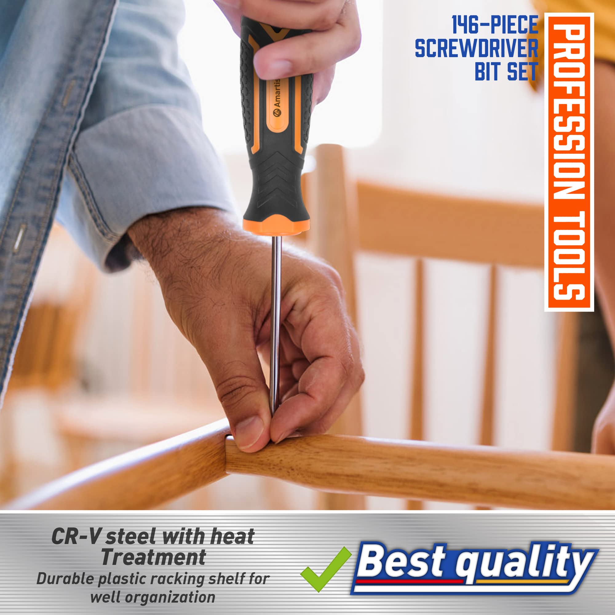 Amartisan 146-piece Magnetic Screwdrivers DIY Tools Set Plastic Racking for Men Tools Gift, Includs Precision screwdriver, Magnetizer, Key Set, Nut Driver and Bit Set