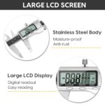 • 【STAINLESS STEEL MATERIAL】The vernier caliper is made of high-strength stainless steel and is waterproof and dirt-proof. The service life of this stainless steel digital caliper is longer than that of calipers with plastic or carbon fiber parts. Powered by battery, comes with a pre-installed battery and 2 spare batteries for gift.