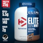 - Dymatize Elite 100% Whey Protein Powder, 25g Protein, 5.5g BCAAs & 2.7g L-Leucine, Quick Absorbing & Fast Digesting for Optimal Muscle Recovery, Rich Chocolate, 5 Pound, 63 Servings