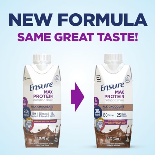 Ensure Max Protein Milk Chocolate Nutrition Shake | 30g Protein, 1g Sugar, 4g Fiber Blend | 12 Pack