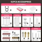 - 【Multipurpose Rotary Tool Set】The high-performance and low-noise rotary tool combined with 61 most popular power rotary tool accessories for DIY fine work, Not for Heavy-duty Projects.