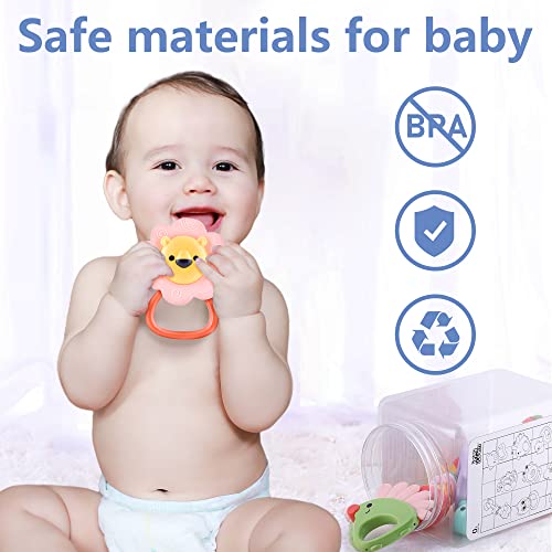 iPlay, iLearn 10pcs Baby Teething Rattle Toys, Infant Gift Set for 6-12 Month, Bulk Animal Rattles W/ Container, Newborn Sensory Early Development Toy for 0 2 3 4 5 7 8 9 10 Months Old Babies Girl Boy