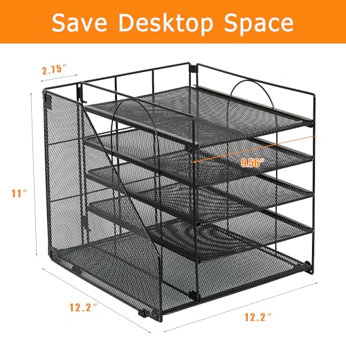 LEKETREE Desk Organizers and Accessories, 5-Tier Paper Letter Tray Organizer with File Holder, Desktop Organizer for Office Supplies, Office Desk Accessories & Workspace(Black)