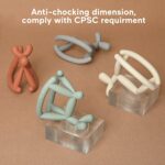 • WEARABLE STRUCTURE: Jelly baby teether is made up from several easy-holding silicone sticks also can hold on wrist to reduce frequency of accidental dropping in use, crooked basement decrease contact surface to table to keep dust or dirt away at large extent.