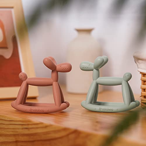 Miraloop Teething Toy for Baby 0-6, 12, 18 Months Infant, Jellydog Never Drop Food Grade Silicone Rocking Teether, Prevent Choking & Odorless, Less Dust and Hair Adhesion, Baby Gift, Mint Green