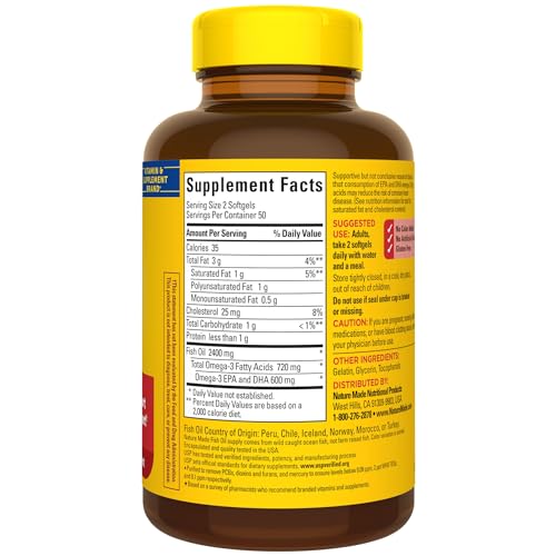 - Heart health support supplement: contains one 100 count bottle of Nature Made Fish Oil 1200 mg Softgels for a 50-day supply
