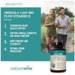Details: Say goodbye to stinky fish oil supplements and say hello to NatureWise Omega 3 + Vitamin E softgels. Every serving of this omega 3 supplement provides 1060 mg of Omega 3 fatty acids with the added benefits of vitamin E. Why take omega 3 fish oil with vitamin E? Because this dynamic duo works together to support your overall heart health, as well as your eye health. Vitamin E is a fat-soluble vitamin with antioxidant properties that supports omega-3 fatty acids in the body. Omega 3 fatty acids also support overall joint health, comfort, and flexibility. NatureWise Omega 3 + Vitamin E uses a high-quality blend of fish oils to deliver the best source of omega-3 fatty acids. Our Omega 3 supplement is made with premium omega 3 fish oils with the optimal dose of 600 mg EPA and 400 mg DHA fatty acids, and 60 mg of other fatty acids, so your body gets support for your overall heart, brain, joint, and eye health.* NatureWise Omega 3 softgels are gluten-free and non-GMO. These softgels do not contain wheat, gluten, eggs, dairy, peanuts, tree nuts, and corn. This product contains fish (anchovy, mackerel, sardine) and soy. *Statements regarding dietary supplements have not been evaluated by the FDA and are not intended to diagnose, treat, cure, or prevent any disease or health condition.