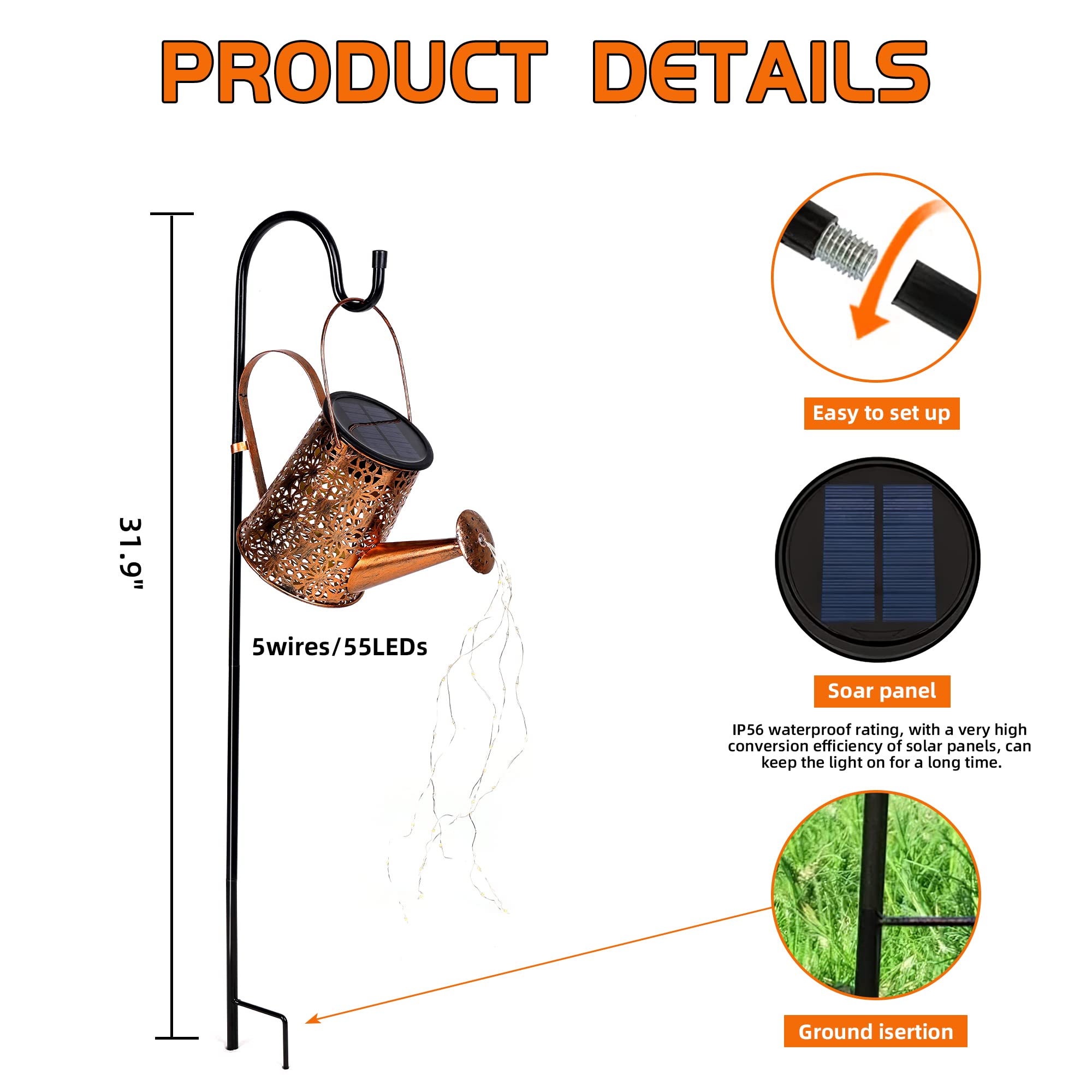 - ✨【Solar Watering Can with Lights】Otdair Solar Garden Light comes with 5 string lights (56 LEDs) that can be easily bent and shaped into any shape you like.Choose a special spot in your garden or yard, hang a solar watering can light, and the light will look like it’s watering.