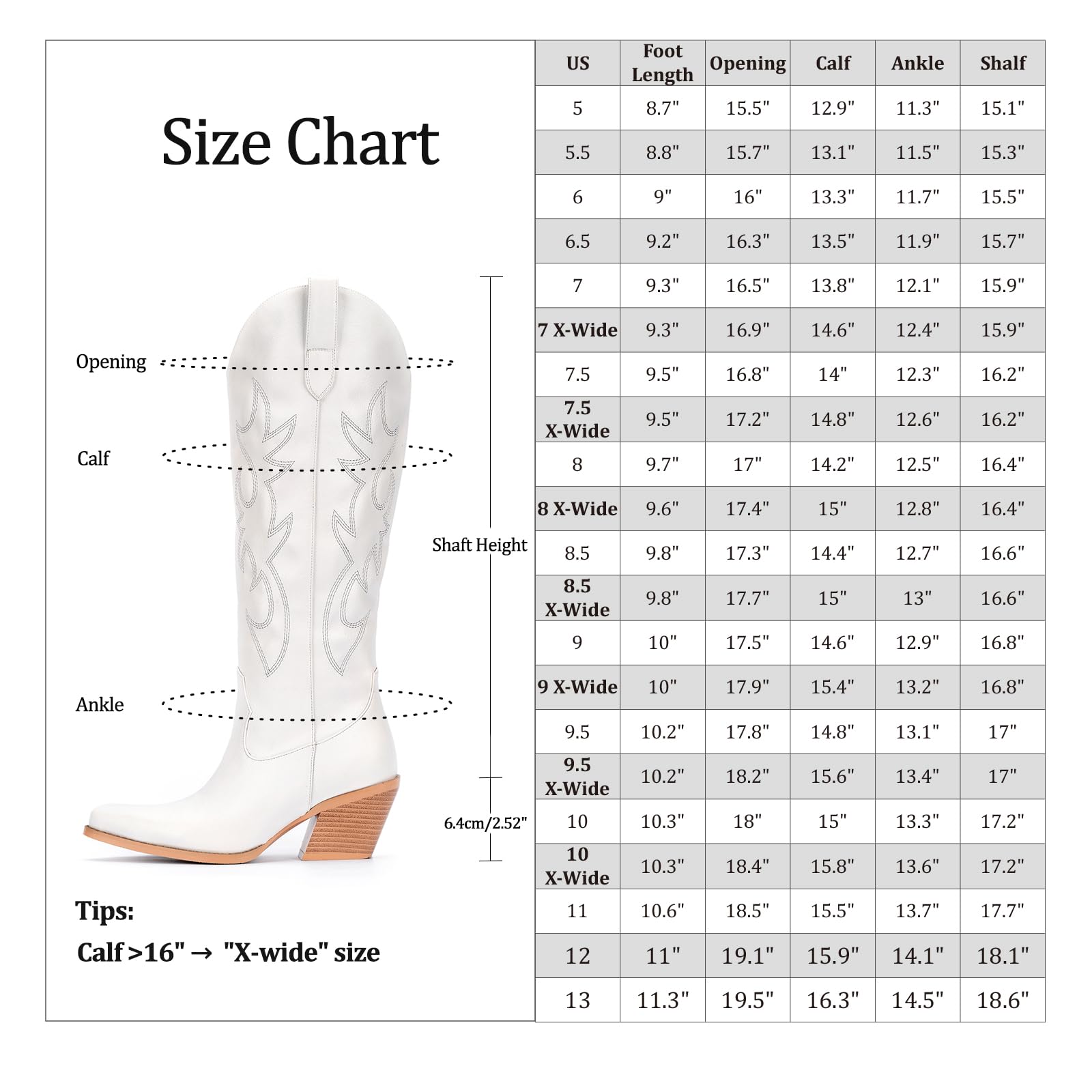 - Classic Design: The mid calf cowboy boots for women are designed with classic embroidery, rubber sole and mesh fabric lining.