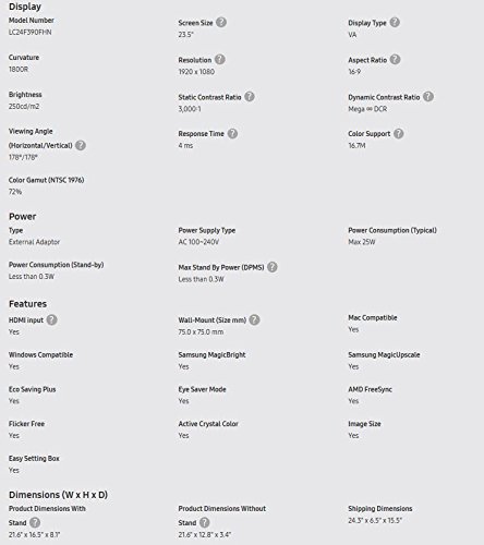 SAMSUNG LC24F390FHNXZA 24-inch Curved LED FHD 1080p Gaming Monitor (Super Slim Design), 60Hz Refresh Rate w/AMD FreeSync Game Mode
