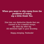 • Savour the Goodness: Our teas are made with top-quality ingredients that are meticulously chosen and blended to an artful balance. Every Stash Tea flavor is designed to turn your daily ritual into a joyful moment of tranquility