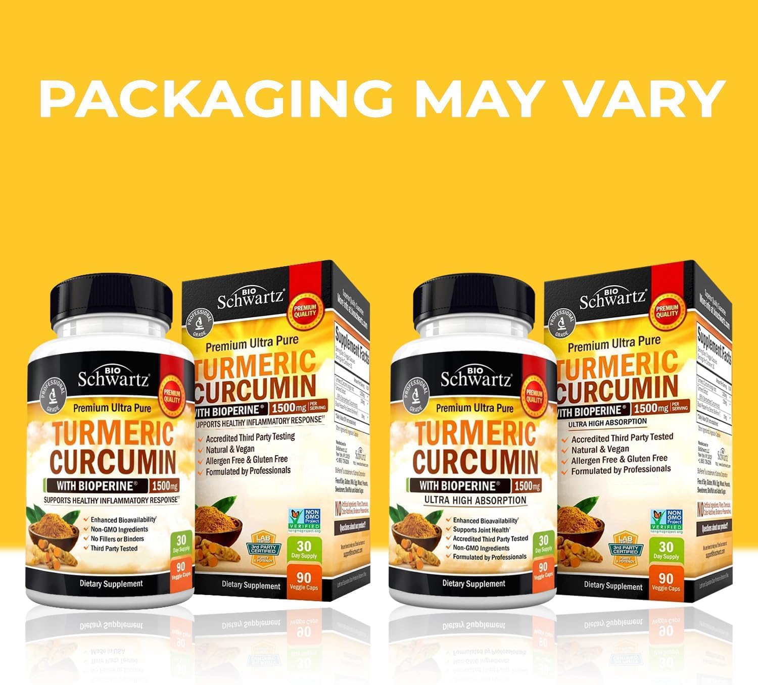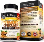 Details: Why Choose BioSchwartz Turmeric Supplement? Extremely Potent Turmeric Curcumin 1500 mg* with BioPerine® for Superior Absorption and Bioavailability per serving + Money Back Guarantee No Questions Asked! – Feel the difference or your money back! + Highest Potency of Curcumin Available – BioSchwartz Turmeric Pills with BioPerine® have 1500mg per serving of pure Turmeric Curcumin with Black Pepper. + Doctor Formulated Advanced Formula – 1500mg per serving of premium quality turmeric capsules with black pepper, with standardized 95% curcuminoids to maximize results. (other brands use cheap ineffective Turmeric, to be effective it MUST be standardized to 95% Curcuminoids, like Turmeric Curcumin Schwartz) + Superior Absorption Turmeric Extract – For increased absorption and Bioavailability our Turmeric Curcumin has 10mg of BioPerine® per serving, (the most researched and trusted form of black pepper extract, turmeric with bioprene) which is proven to dramatically enhance your body’s absorption of Curcumin. A must have for any quality curcumin supplement. + Third Party Tested – to assure the highest quality and purity of our turmeric with black pepper (turmeric with bioperine). + Gluten Free Curcumin with Black Pepper – Our Curcumin with Bioperine is FREE of Gluten and it is also vegan and vegetarian. + Natural & Pure Formula – Contains NO GMO’s, artificial ingredients, fillers, binders, preservatives or chemicals. Our formula is FREE of soy, milk, egg, shellfish, corn, wheat, peanuts and sugar. Our premium supplements are produced from the finest raw materials and under stringent quality control standards to ensure the highest quality supplement is developed. *This product contains 1500mg of turmeric curcumin per serving (3 capsules). Each capsule contains 500mg.