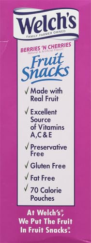Welch’s Fruit Snacks, Berries ‘n Cherries, Perfect for School Lunches, Gluten Free, Bulk Pack, Individual Single Serve Bags, 0.8 oz (Pack of 40)