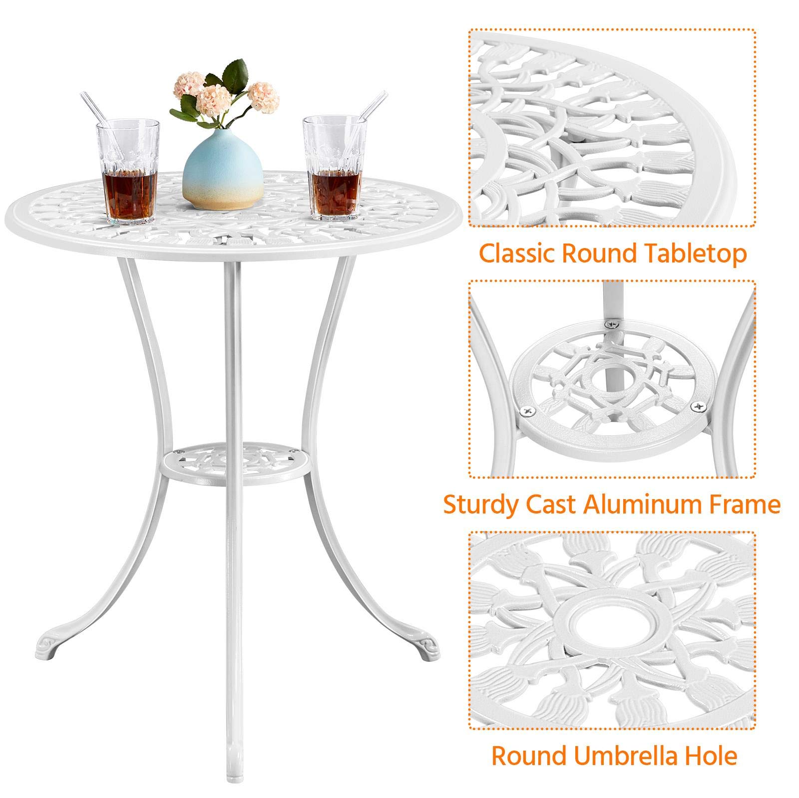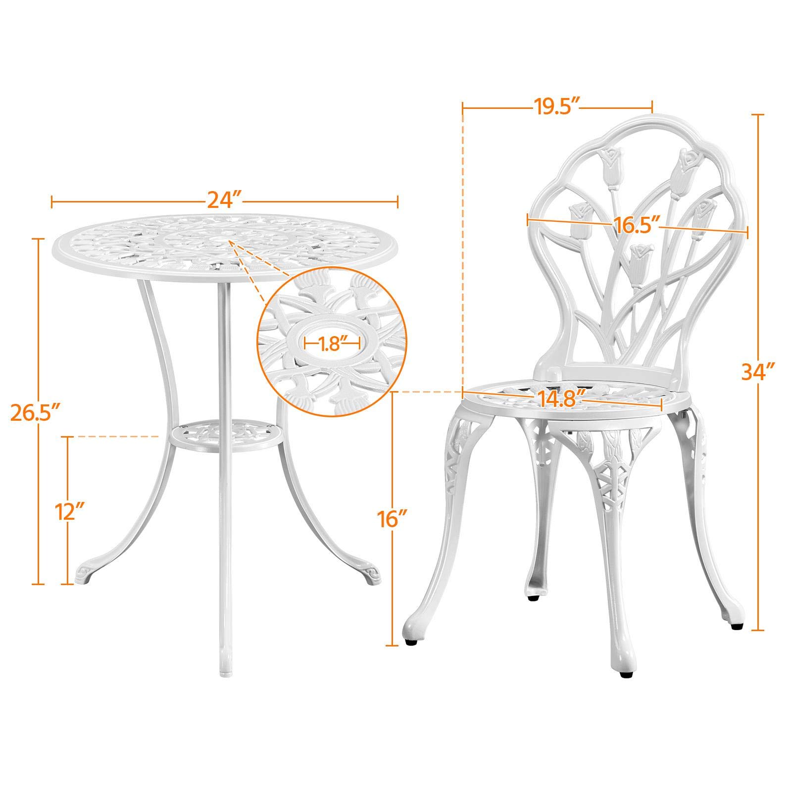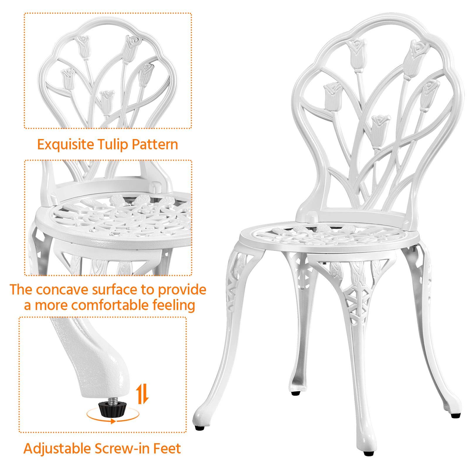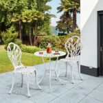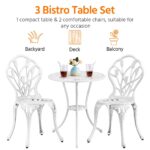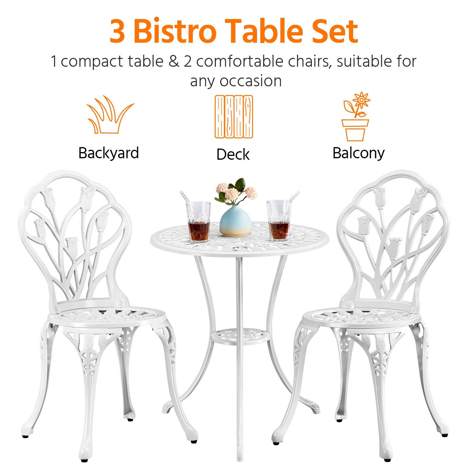 Yaheetech Patio Bistro Sets 3 Piece, Outdoor Rust-Resistant Cast Aluminum Garden Table and Chairs, White